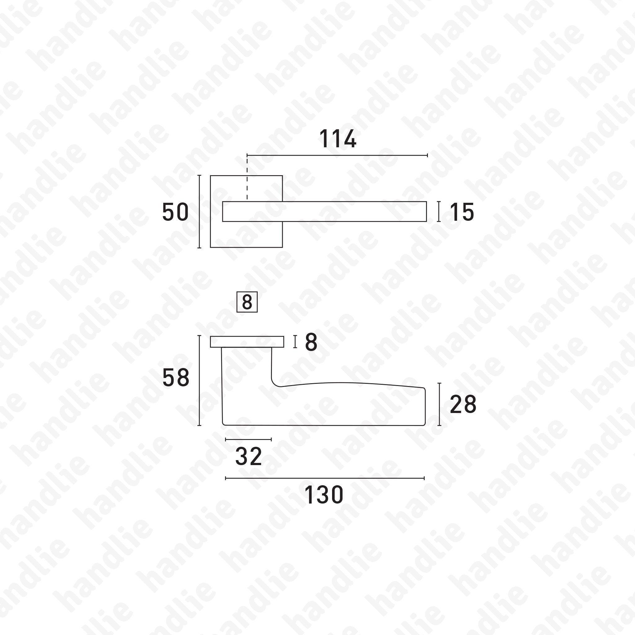 • Lever handle pair "JNF Collection" with square rose QC08M• Minimalist rose/plate, 8mm of height